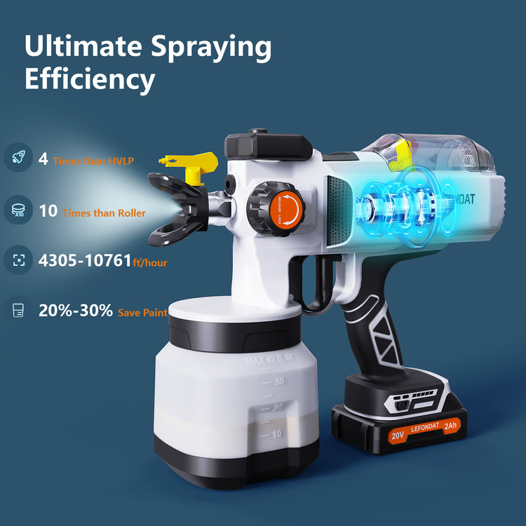 Our spray gun offers exceptional efficiency, with a spraying speed four times faster than traditional air spray guns and ten times faster than rollers. With a lightweight body of only 2900 grams, it provides comfortable operation and reduces fatigue