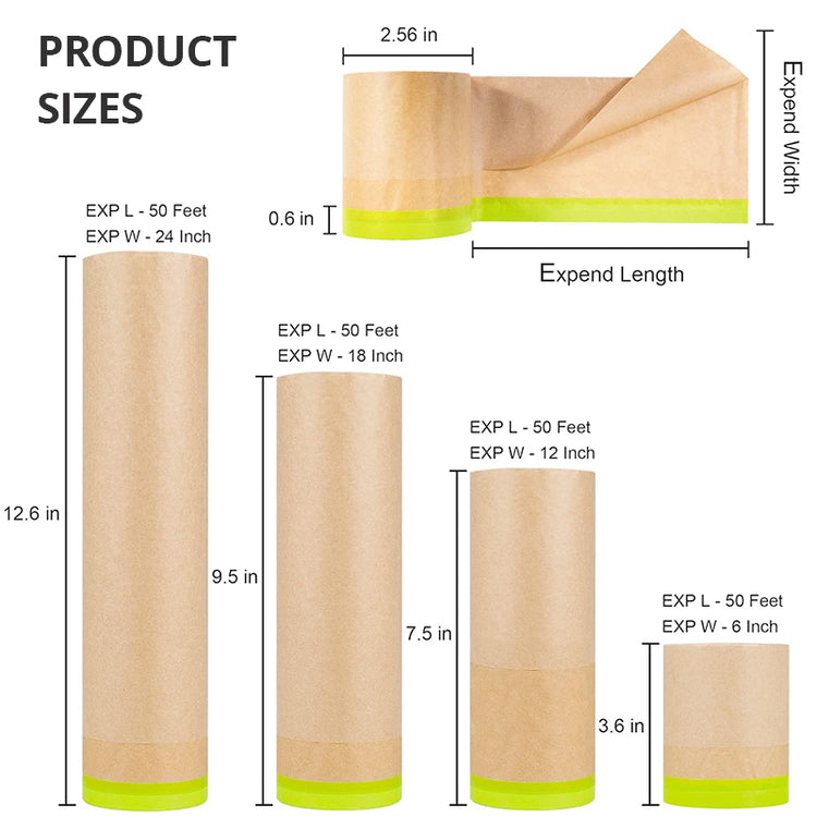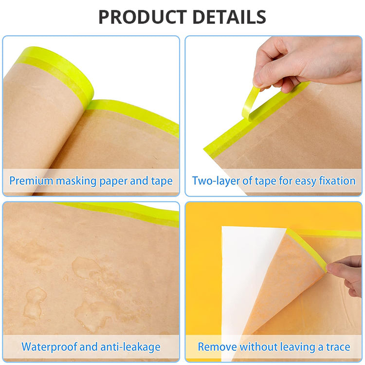Masking Paper, 50 Feet Automotive Paint Paper Roll with Tape