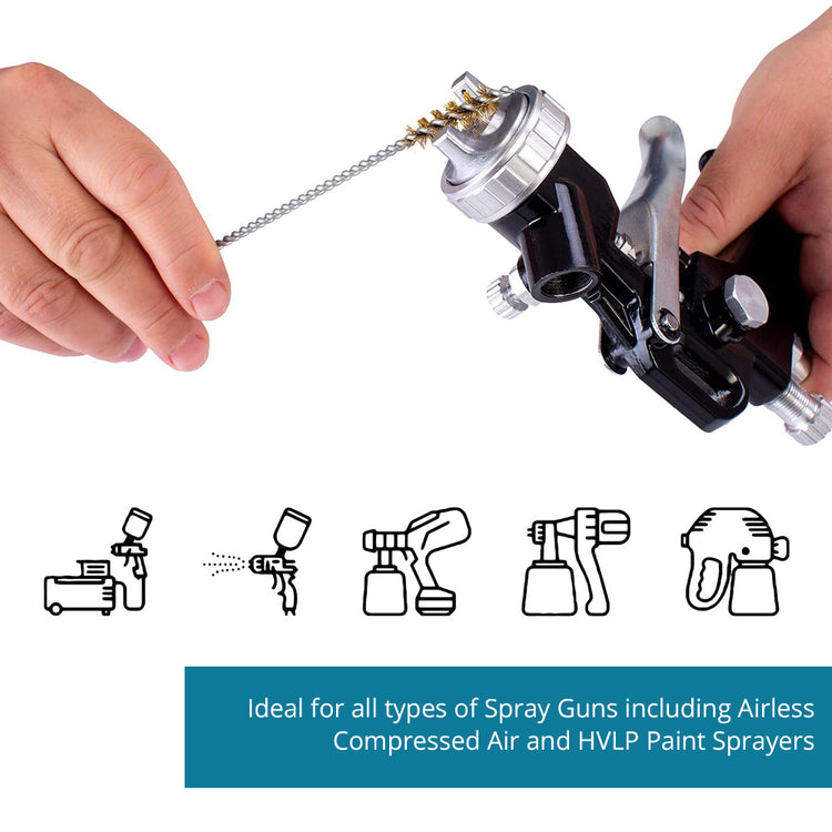 - The paint gun cleaning kit is ideal for cleaning all spray guns, including suction, gravity, pressure feed, HVLP, and airbrushes.