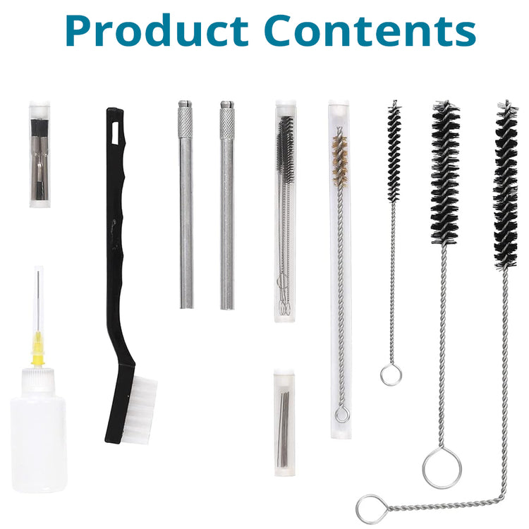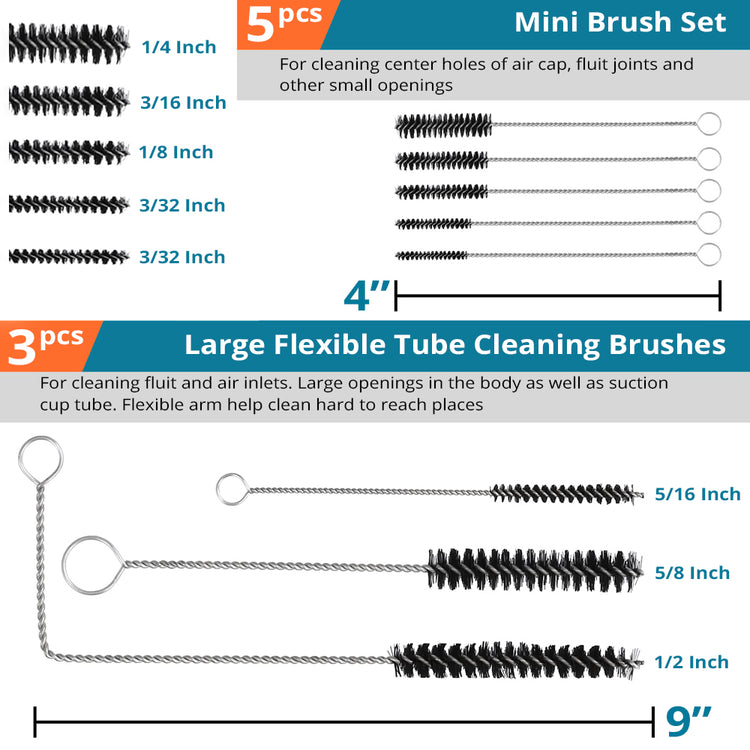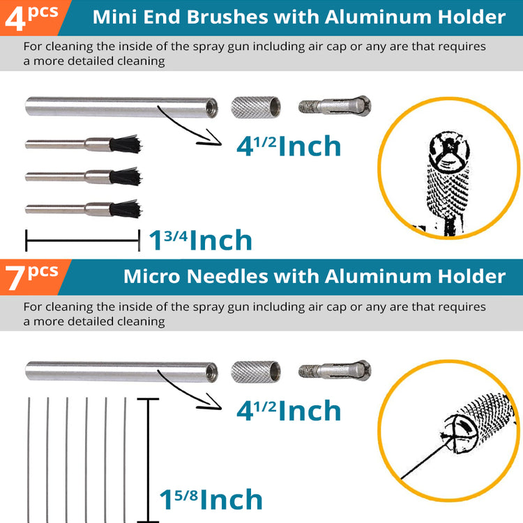 - 3 Mini End Brushes and Holder, 6 Microneedle Packs and Holder, 5 Mini Brush Set. They will help clean air caps, body cavities, and other exterior parts. Multi-item brushing tools clean any residue to keep the gun in excellent working condition for better-finishing results, extending the life of the gun.