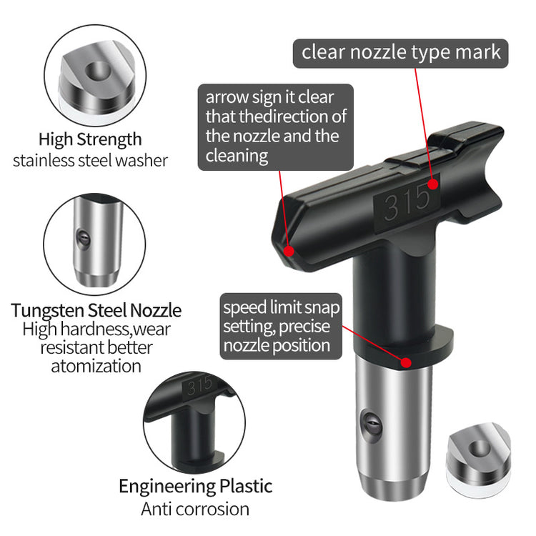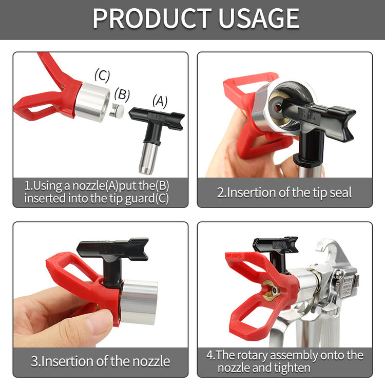 - 【Easy to Install】 This paint spray tip can be easily installed on the spray gun without tools; Use spray tip inserts the tip seal into the guard base; Then inserts the spray tip into the guard base and rotates to complete the installation steps